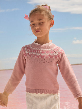 Pullover Rosa a Motivo Jacquard per Ragazze